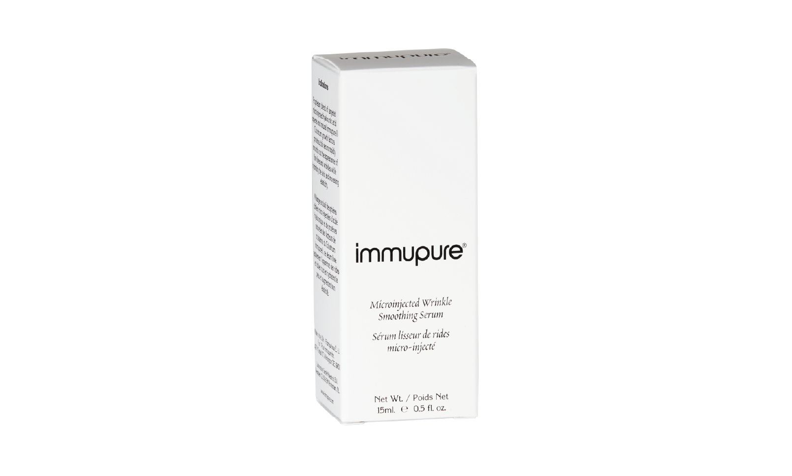 This high-performance targeted wrinkle serum instantly plumps and smooths the look of deep wrinkles and expression lines. Powered by Immupure’s proprietary Colostrum to boost collagen and elastin—it works in synergy with micro-injected hyaluronic acid spheres that expand upon contact to visibly plump and smooth forehead lines, frown lines, smile lines, and vertical lip lines.